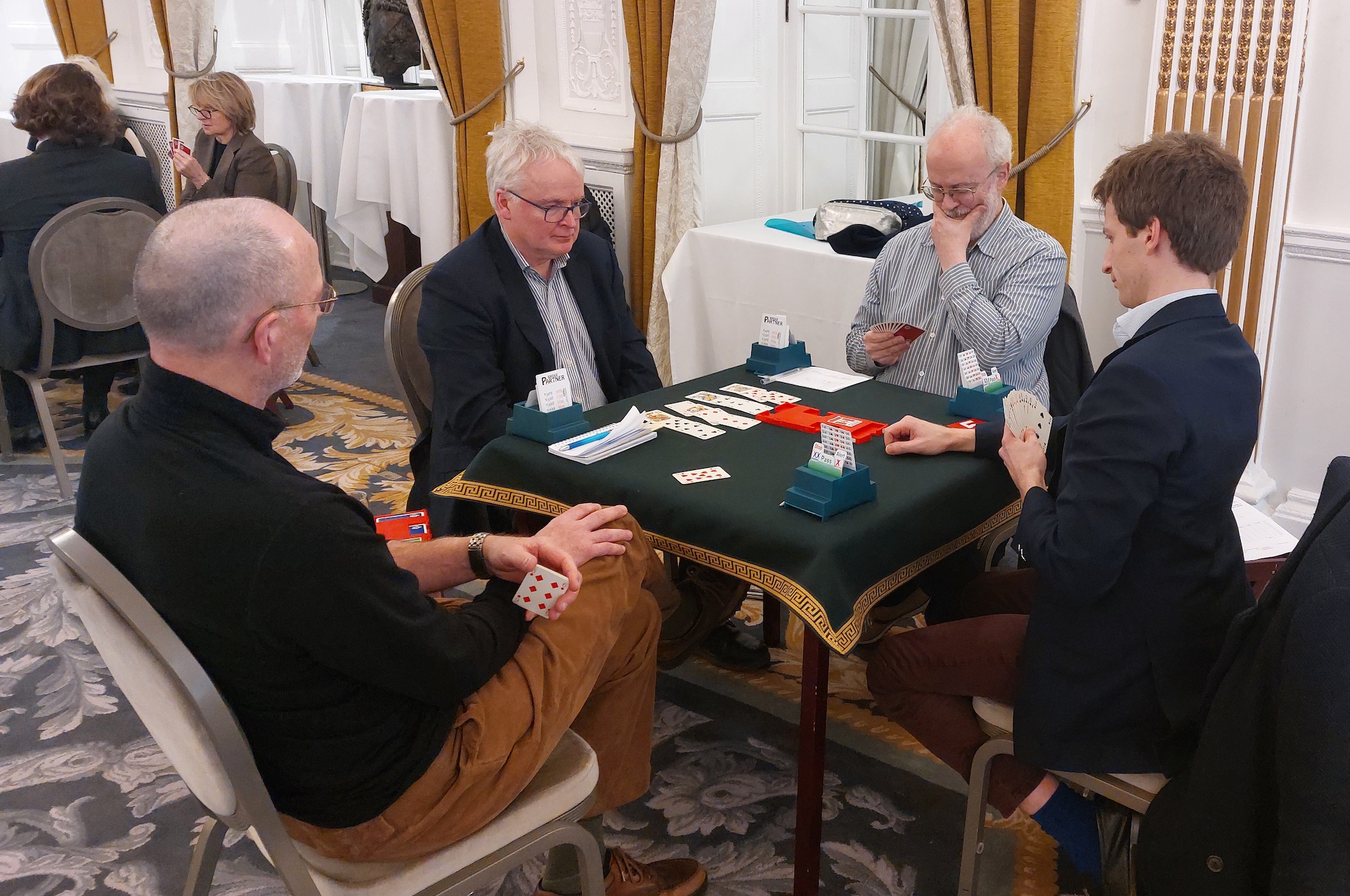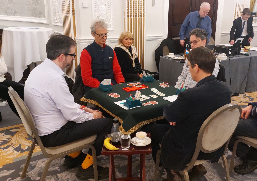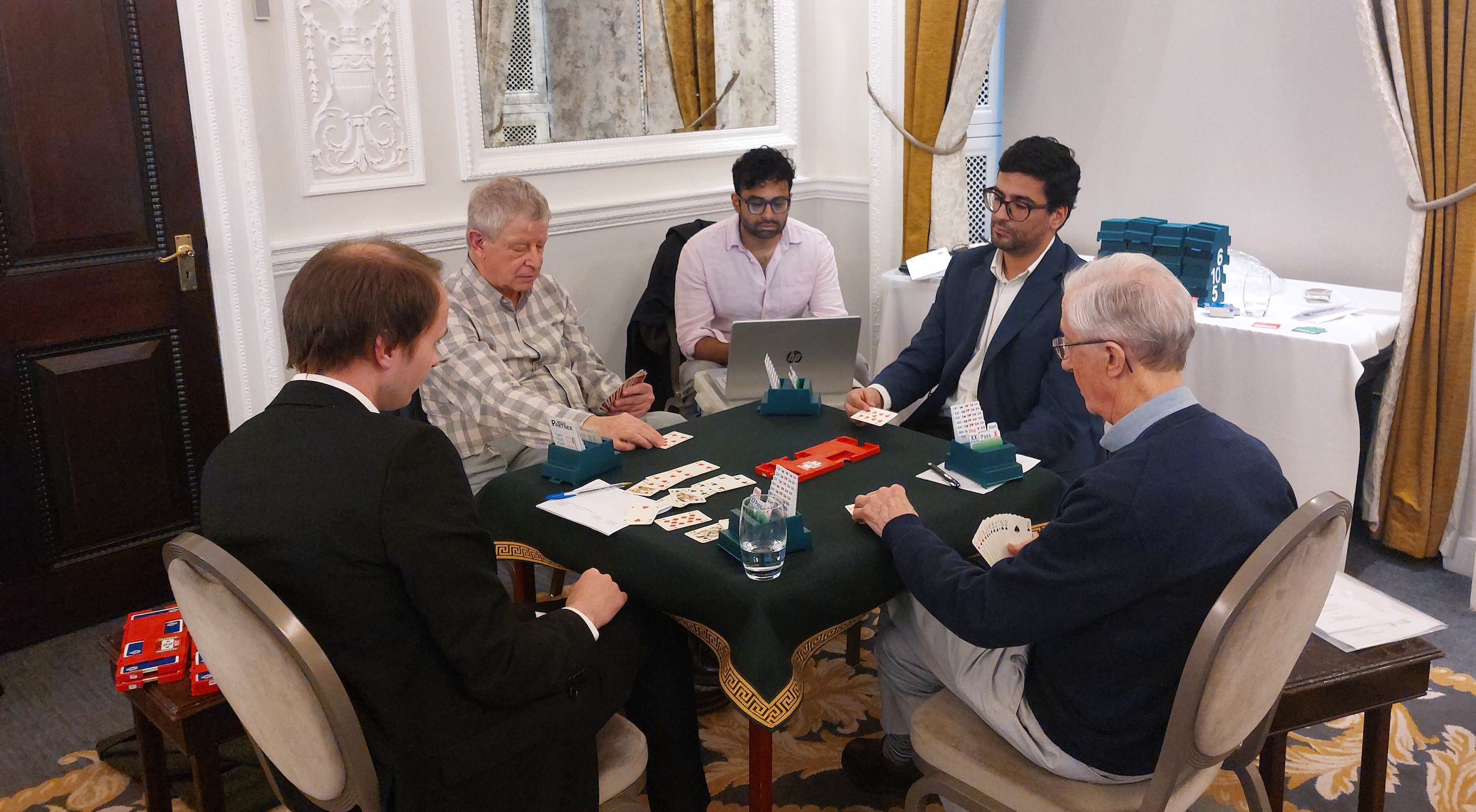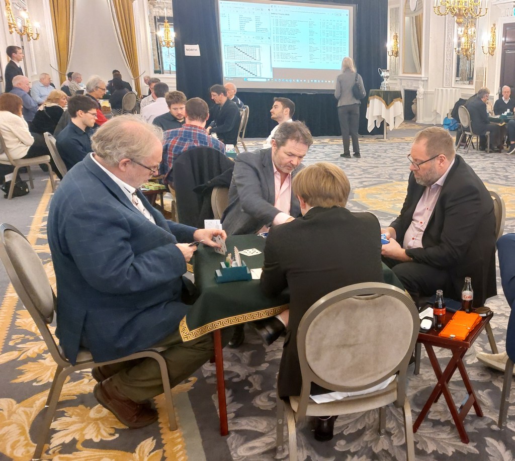 In the match between Harris and Dyson, Jonathan Harris opened the bidding with 1NT, partner Steve Root transferred to spades and Tom Townsend bid 3 clubs which ended the auction.
