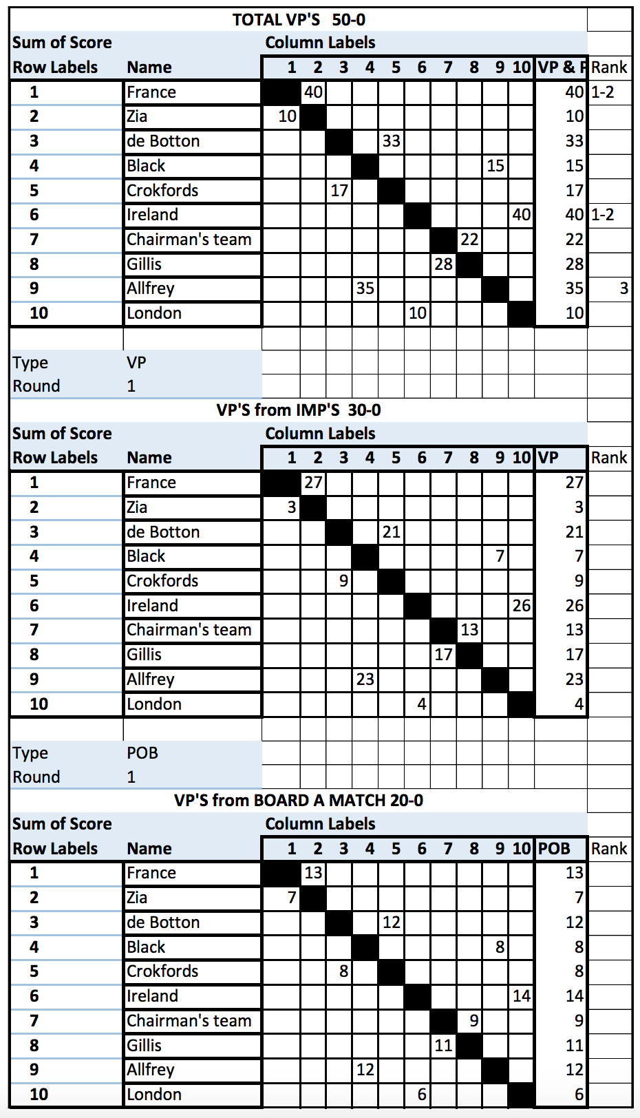 France and Ireland tied at the top after good wins over Zia and London respectively.