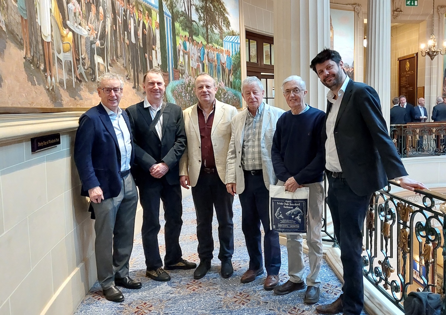 Nick FitzGibbon: Nick’s international bridge career started with the Miami Olympiad in 1972 – playing the Little Major! Since then he has seen sense and from 1974 commenced playing with Adam Mesbur in numerous European Championships and Opens, Olympiads, World Mind Games, Transnationals, Bermuda Bowls and World Pairs / Rosenblum Teams. Together they have gained silver and bronze in the Europeans, won the Cavendish Trophy and placed fifth in a number of European Open and transnational events with two members of the current team for the Lederer: Tom Hanlon and John Carroll. They would have more medals if results properly reflected cheating teams. Frequent team captain Grainne Barton also figures in the medals with a second place in the EU mixed team championships in 1989, playing with Pat Walshe and Nick and his wife Kathryn.