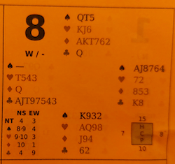 Did you know that an 8410 hand is called an albatross? I didn’t until Paul Barden, commentating in the Vugraph room, used the name for just such a hand on board 8 of match 6. (It’s a coining of Jeremy Flint’s from Back In The Day it seems – see this NYT article for details.)